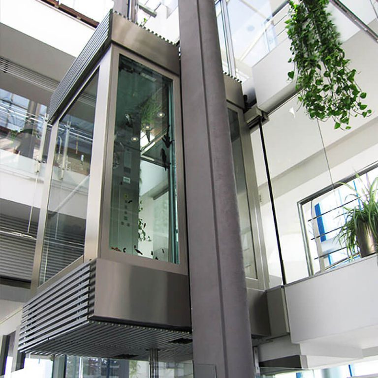 One or more walls of the elevator cabin are made of high-strength glass, allowing passengers to enjoy the view while traveling between floors.
